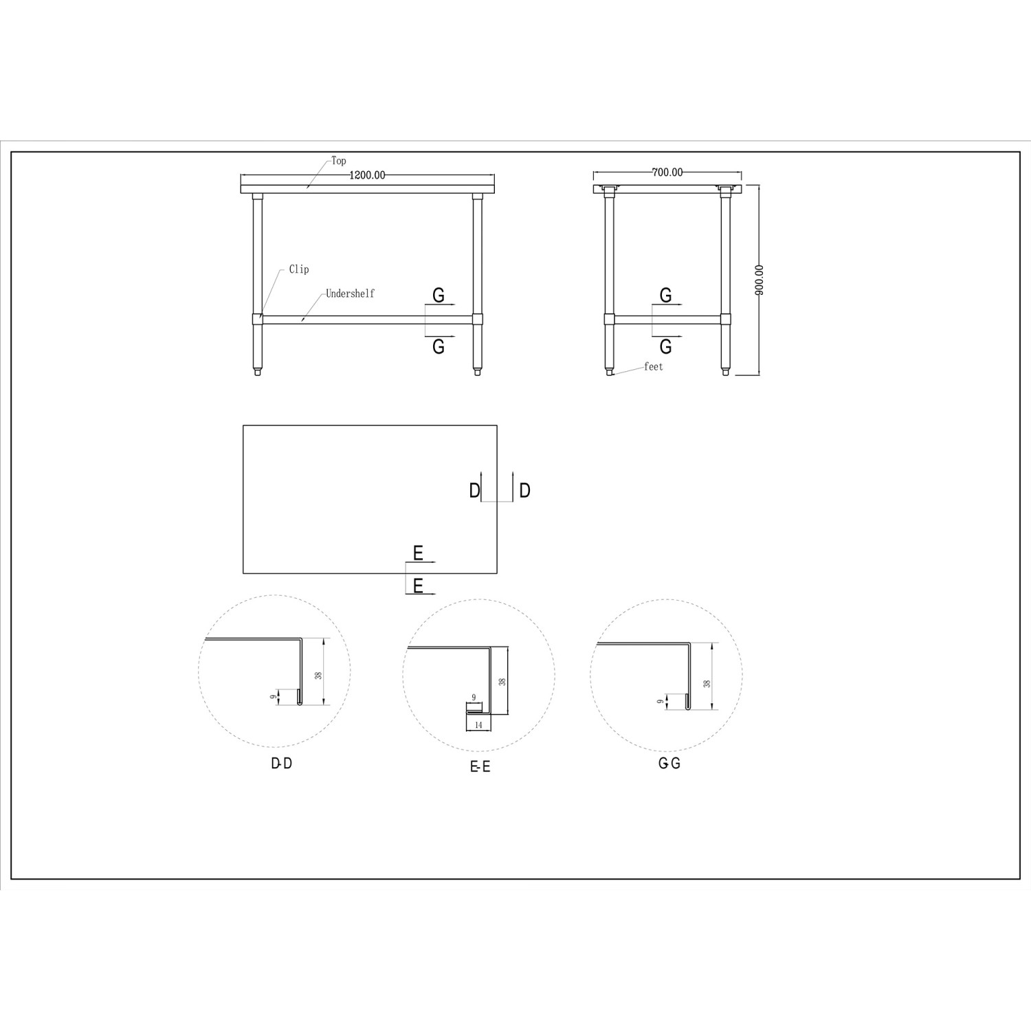 Commercial Stainless Steel Work Table Bottom shelf 1200x700x900mm - CEWT70120G