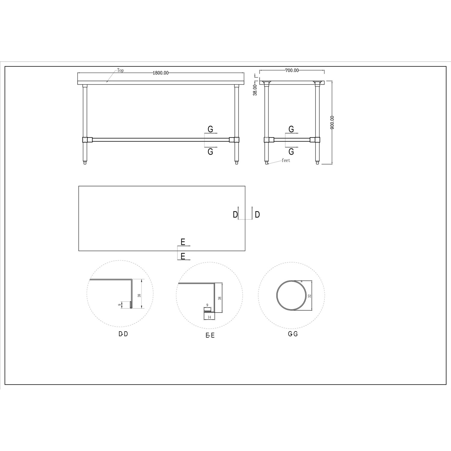 Commercial Stainless Steel Work Table No Bottom shelf with Upstand 1800x700x900mm - CEWT70180GBNU