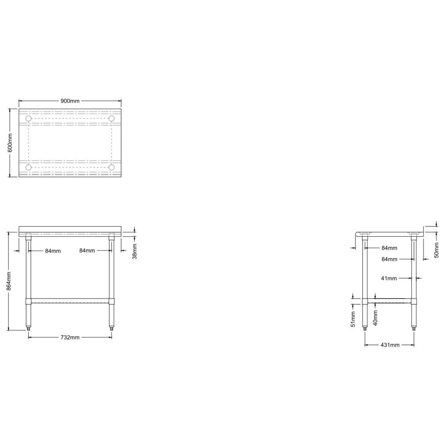 Commercial Work table Stainless steel Rear upstand Bottom shelf 900x600x900mm - CEWTG600X90050R