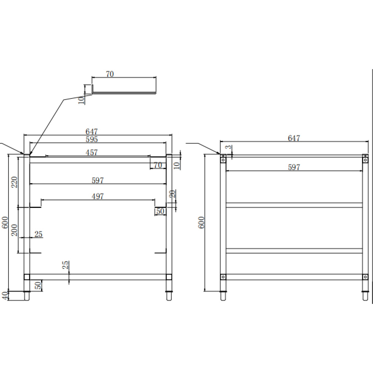 Dishwasher stand with 2 rack guides for dishwashers of Width 565-590mm & Depth 600-700mm.