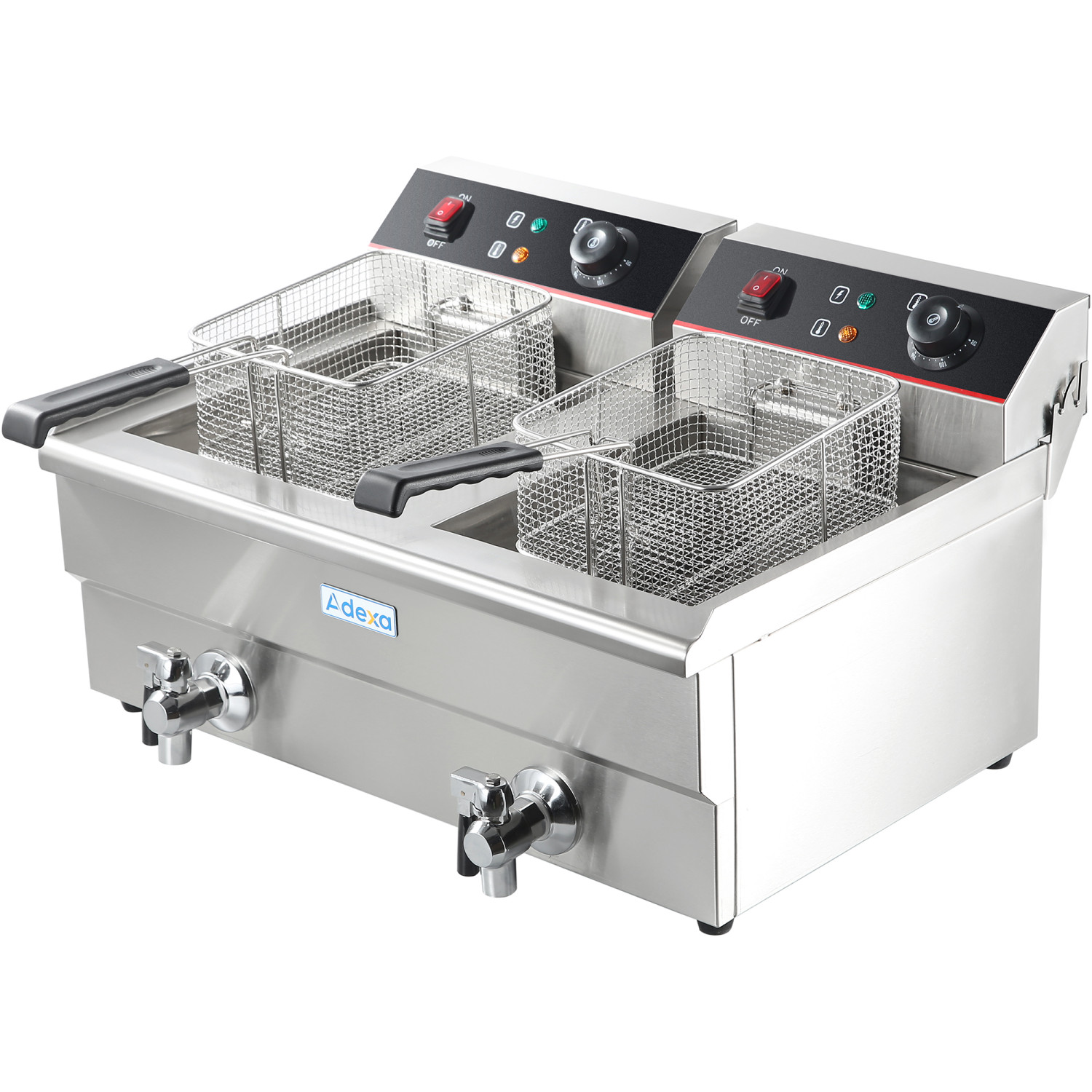 A great quality double tank professional electric fryer. Incredibly space saving with its 580mm width yet large capacity 2 x 16 litre tanks. An ideal piece of equipment for high output fast food catering businesses it's a must have for any restaurant, café, takeaway or canteen. Huge discount savings at the moment at this bargain sale price.