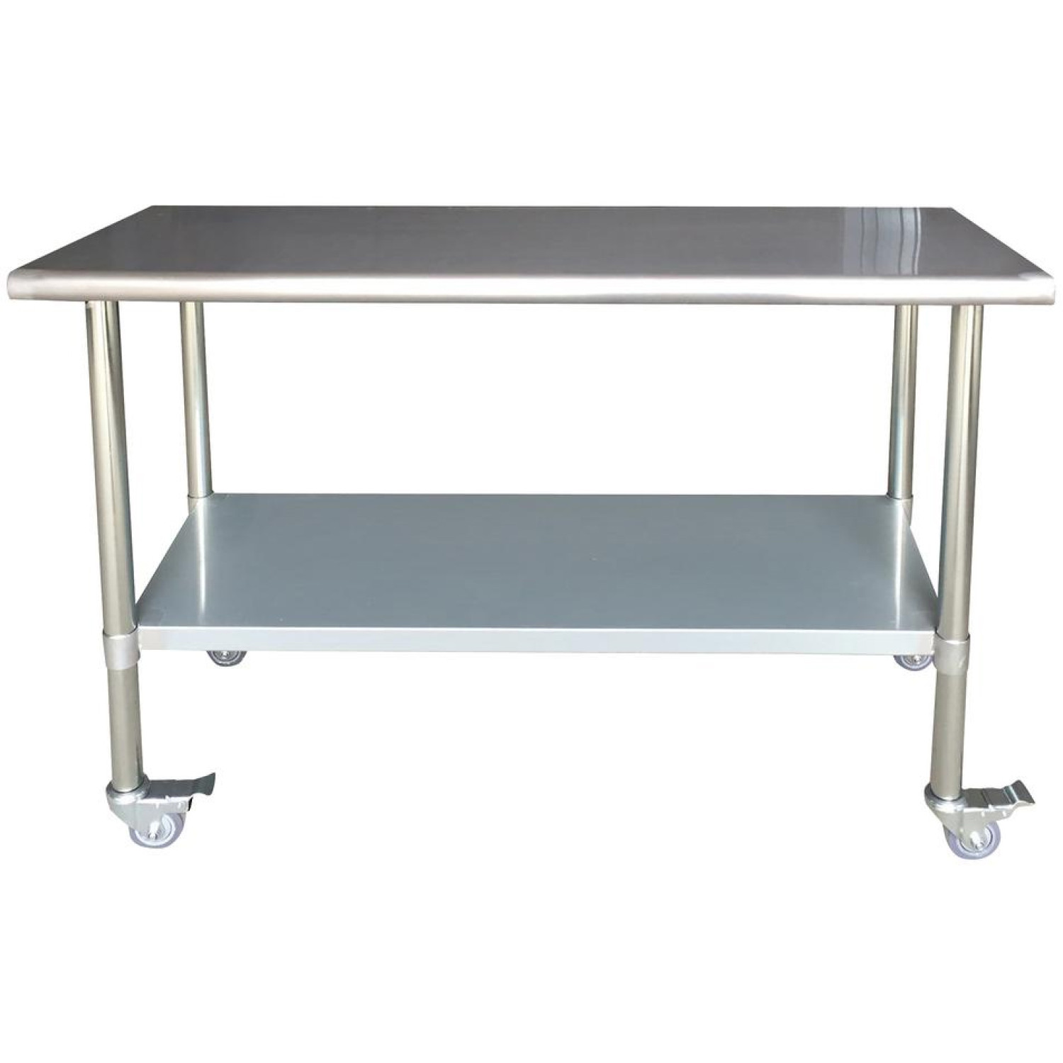 Amazing value for money professional stainless steel work table with wheels. Suitable for any restaurant, hotel or similar catering kitchen establishment.