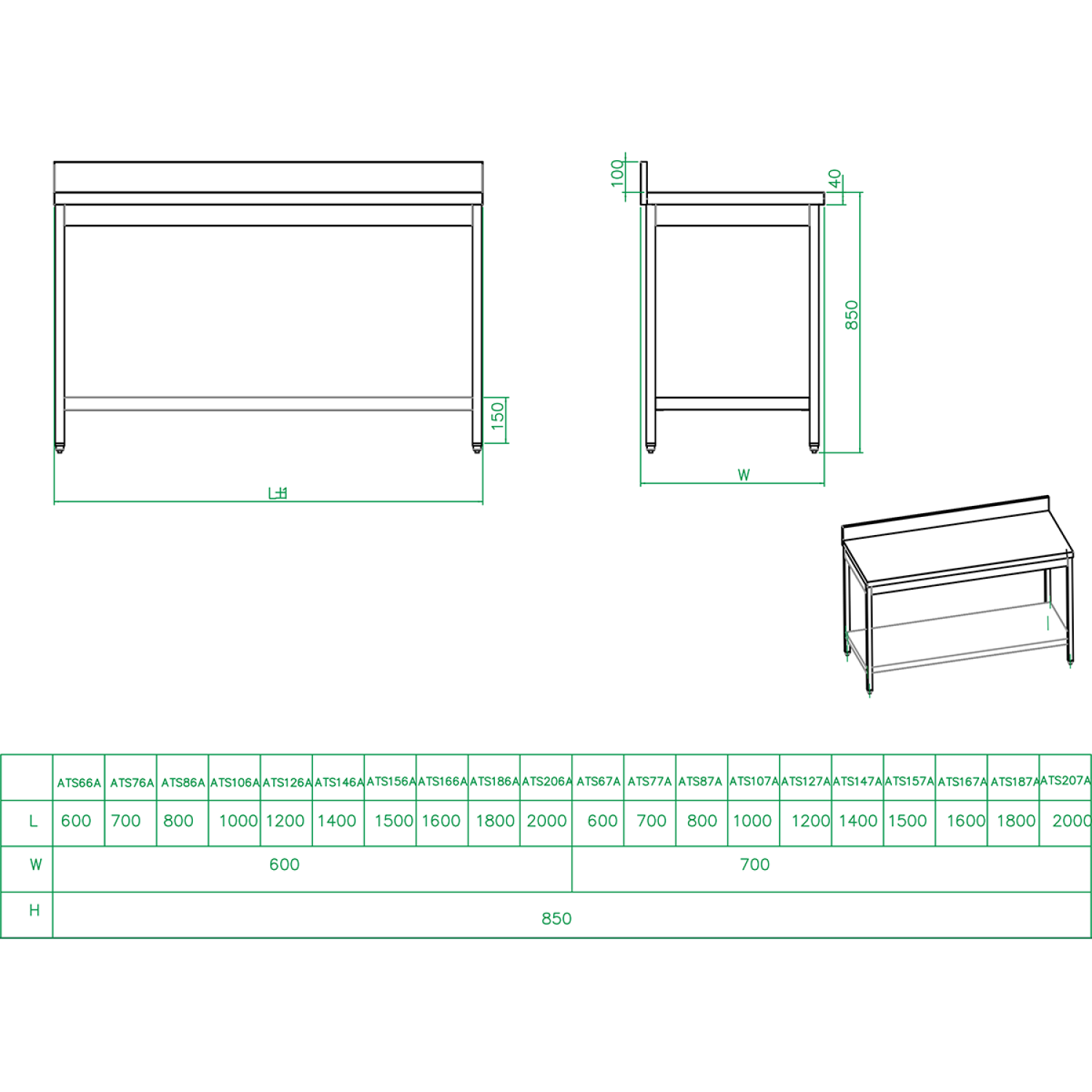 B GRADE Professional Work table Stainless steel Bottom shelf Upstand 1600x600x950mm - THATS166A B GRADE