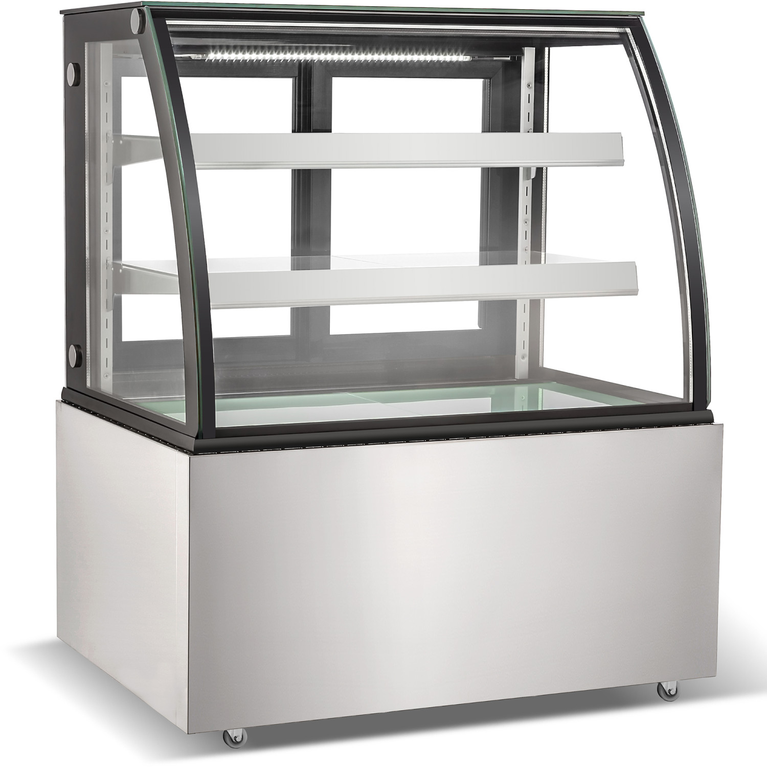 Cake counter Curved front 900x700x1200mm 2 shelves Stainless steel base LED - CEGN900CF2