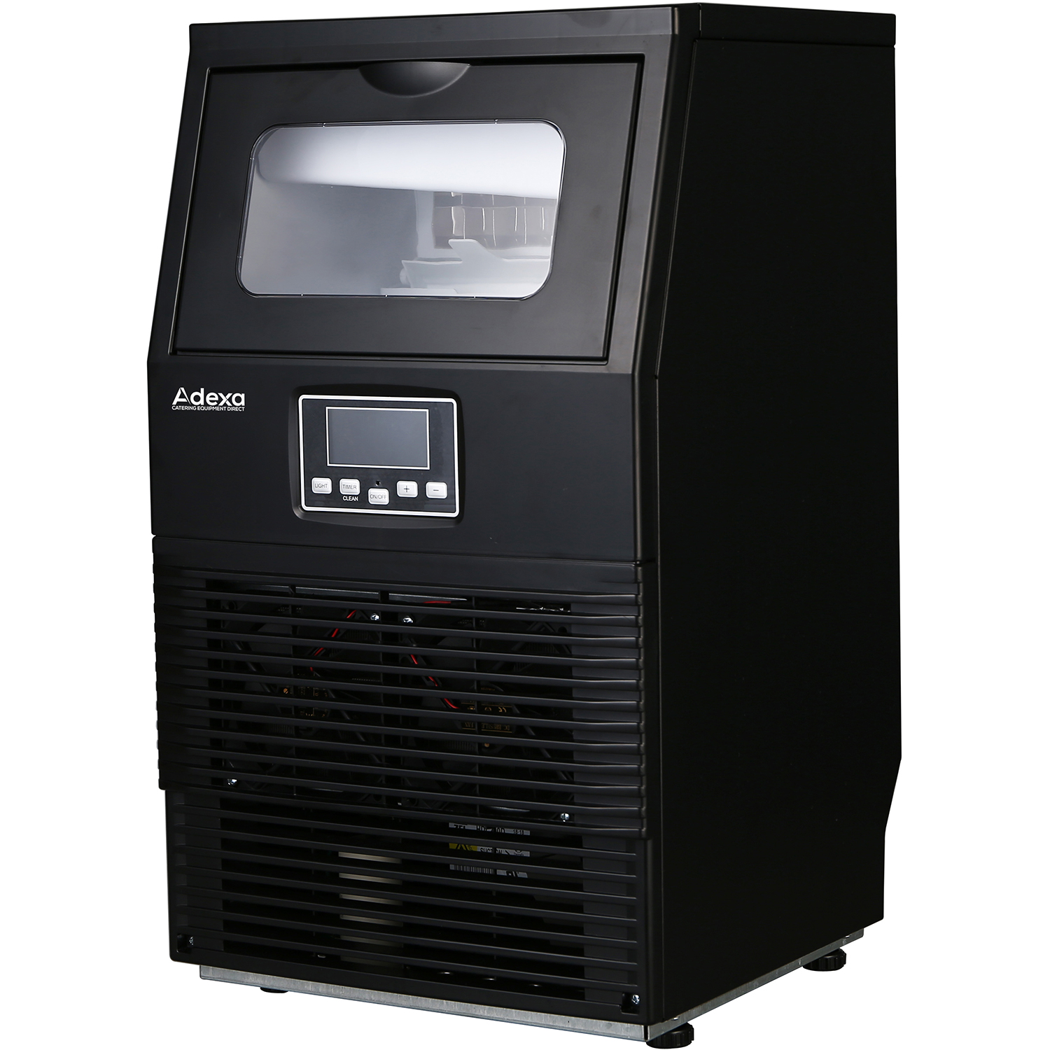 - This high-quality ice making machine is made of food-grade stainless steel, with a double-layer foam insulation layer. The one-button cleaning function makes it durable, sanitary and easy to clean. It is equipped with a digital LCD panel to make reservations. An automatic protection system is included, ensuring safety during operation. Perfect for coffee shops, hotels, bars, bakeries, cold drink shops, and other food industries.