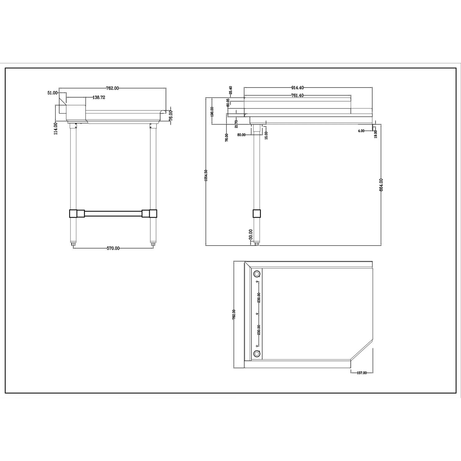 Commercial Stainless steel Pass Through Dishwasher Table Left 914mm Width - CEDCOT3036LEFT
