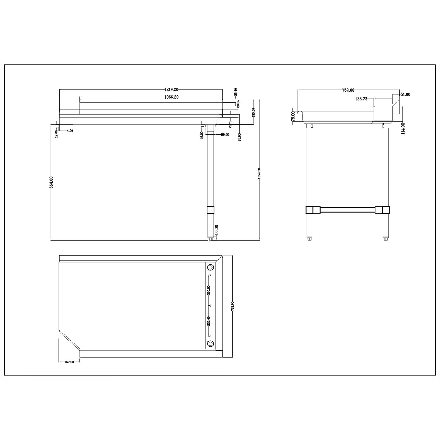 Commercial Stainless steel Pass Through Dishwasher Table Right 1219mm Width - CEDCOT3048RIGHT