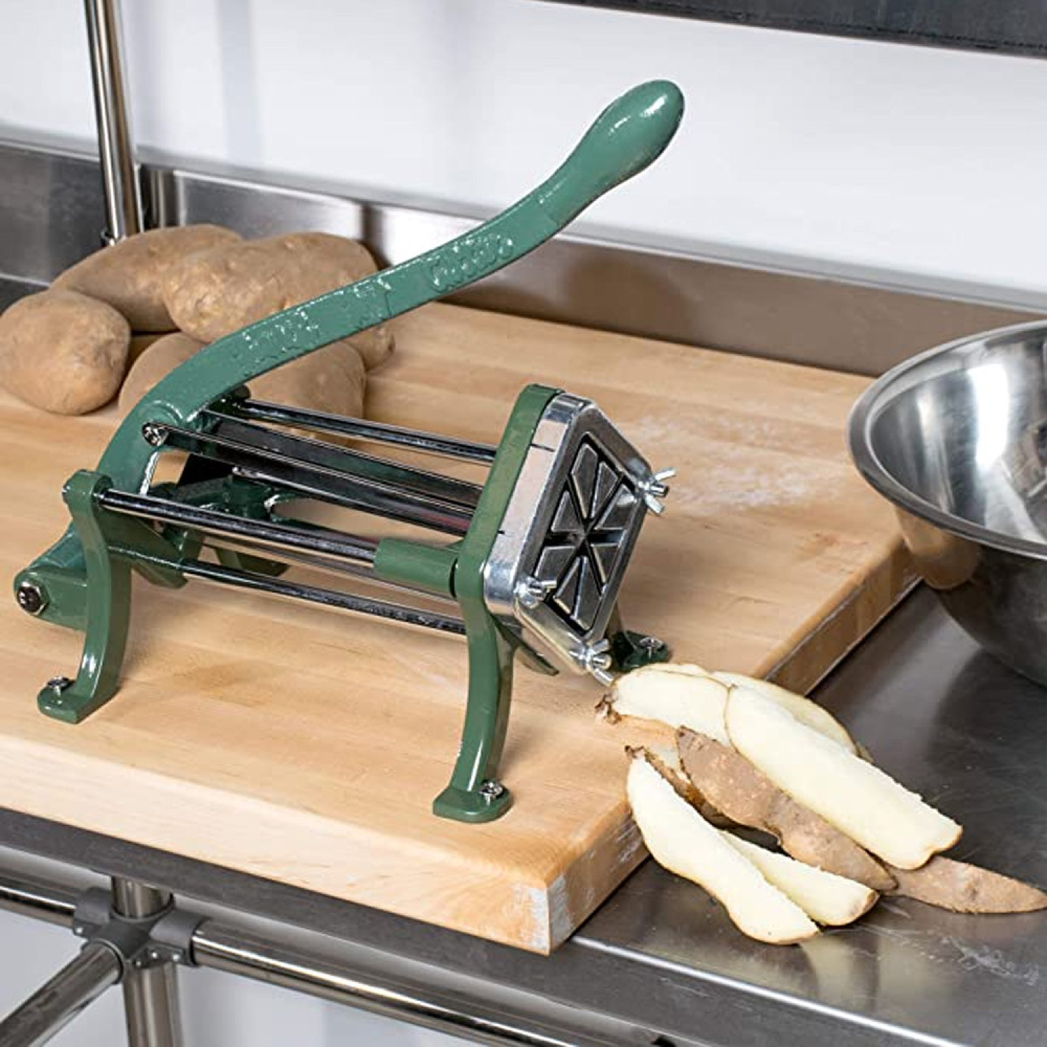This commercial machine is made to cut potatoes in wedge shapes in a fast, reliable and consistent way to ensure that your catering kitchen can be more efficient with this potato wedge cutter. The stainless steel blades will cut the potato into 8 different pieces, and with the die casted aluminium frame you can ensure this potato wedge cutter is durable and easy to maintain and clean.