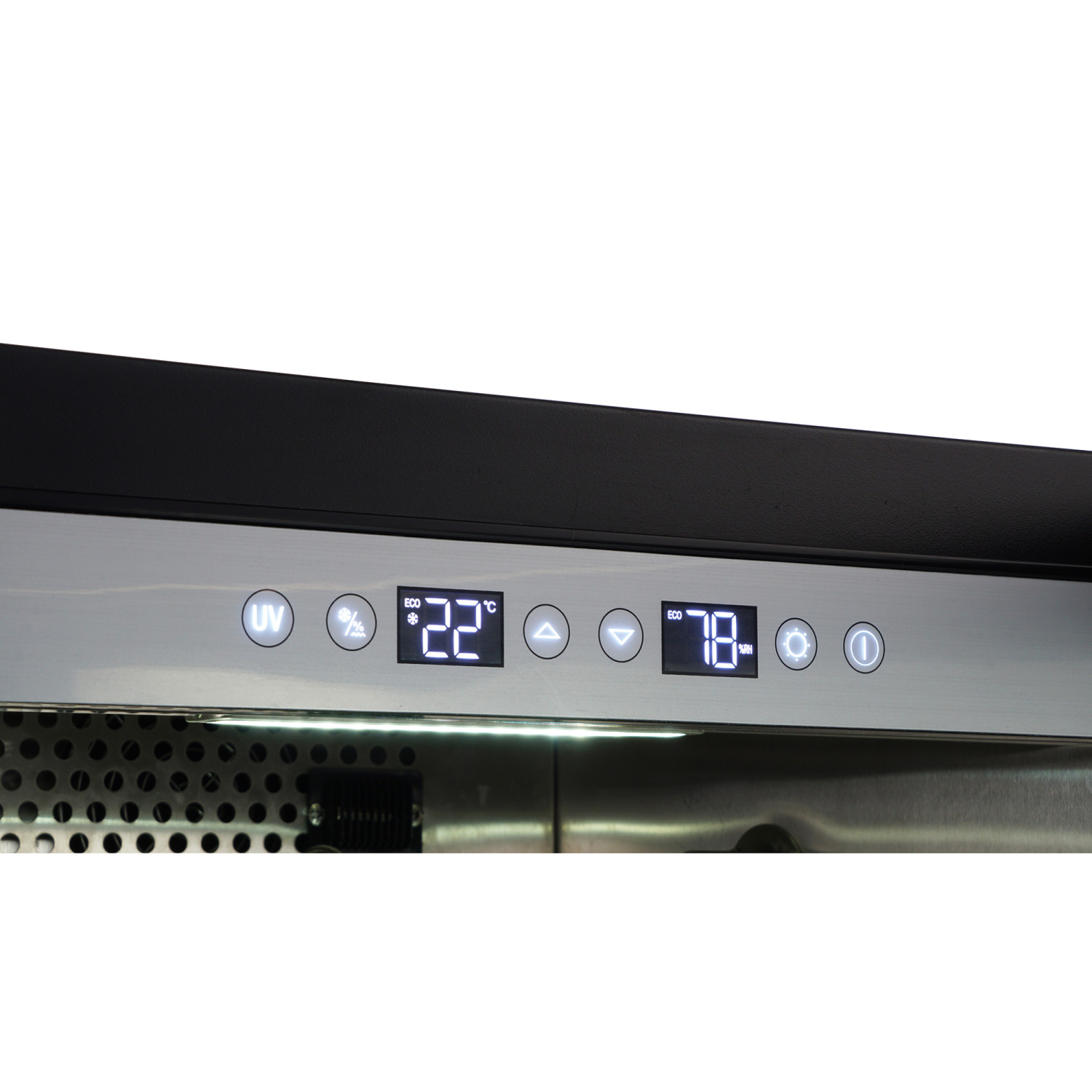 - The intelligent control system allows temperatures from +2 to +14°C as well as humidity values between 50 and 85%, each electronically controllable.