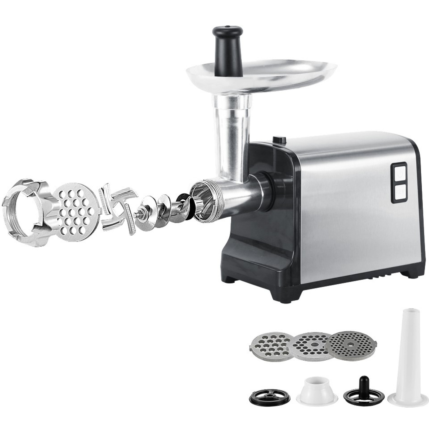 This high quality, stainless steel meat grinder has a powerful and efficient 1000W motor. It includes a stainless steel blade that is durable and hard working, with additional cutting plates (7mm, 5mm, 3mm), kubbe attachment and sausage adaptor to make this grinder even more useful.
