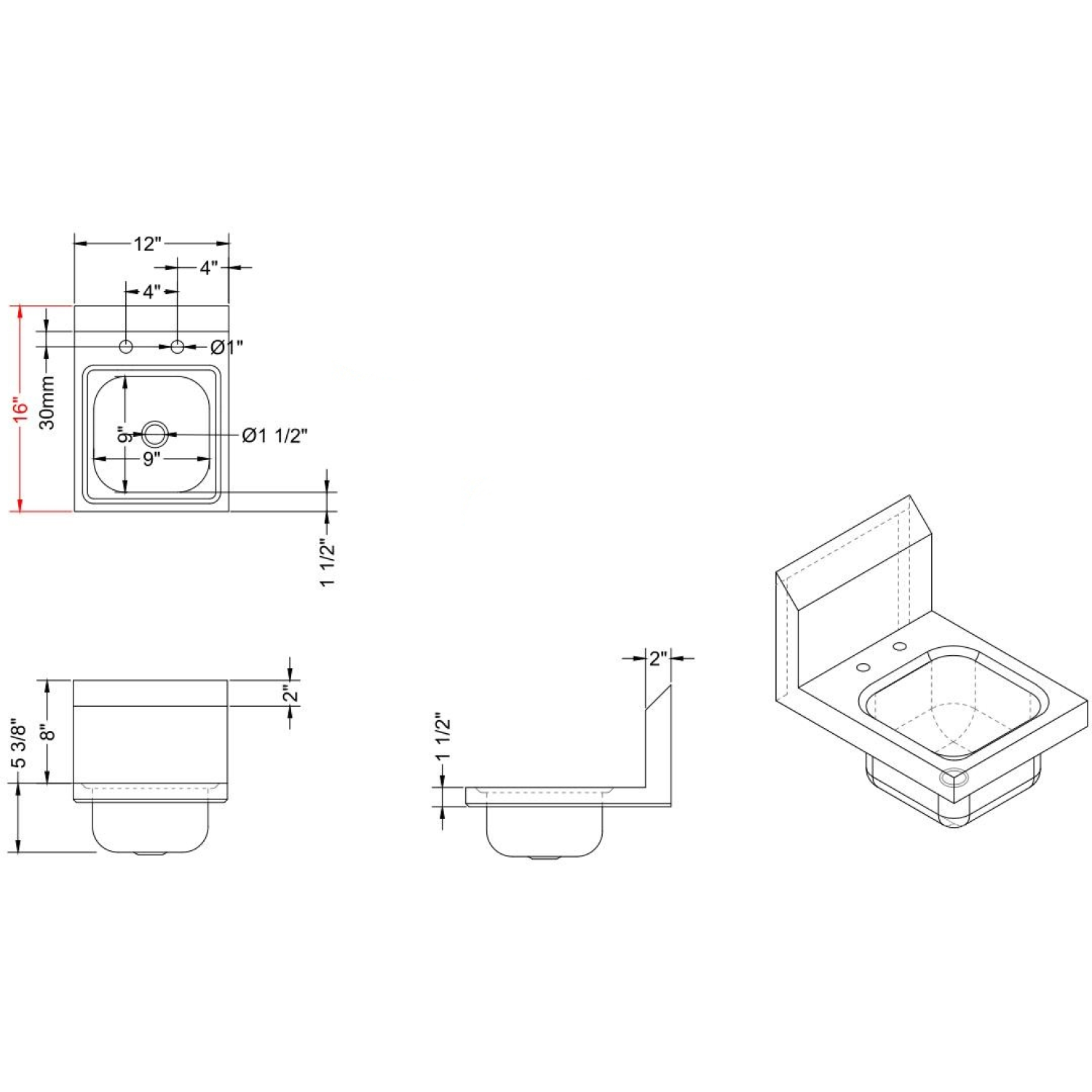 Wall mounted Hand Sink Wall mounted faucet Stainless steel - CEHS12