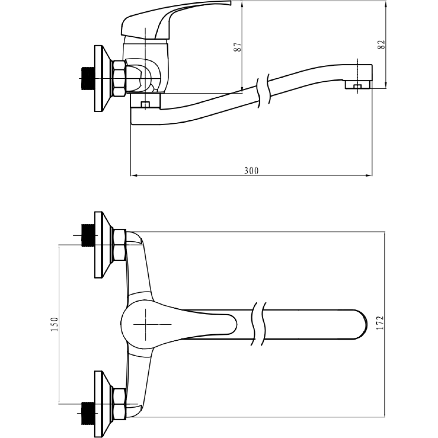 Wall Mounted Mixer Tap with Stainless Steel Spout Single Lever Chrome - CE60128000